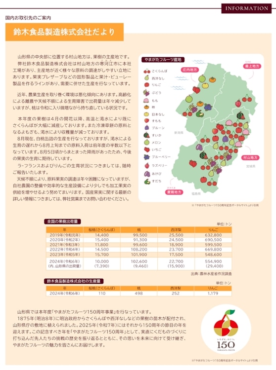 山形県では本年度「やまがたフルーツ150周年事業」を行なっています。
