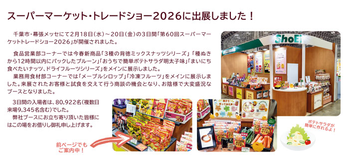 千葉市・幕張メッセにて2月18日(水)~20日(金)の3日間「第60回スーパーマーケットトレードショー2026」が開催されました。