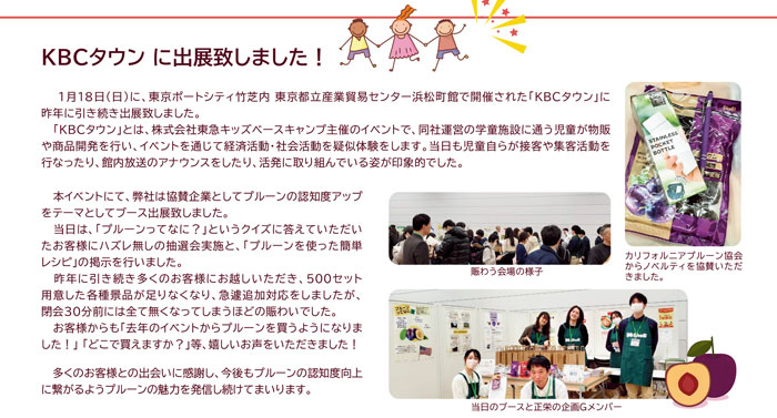 多くのお客様との出会いに感謝し、今後もプルーンの認知度向上に繋がるようプルーンの魅力を発信し続けてまいります。