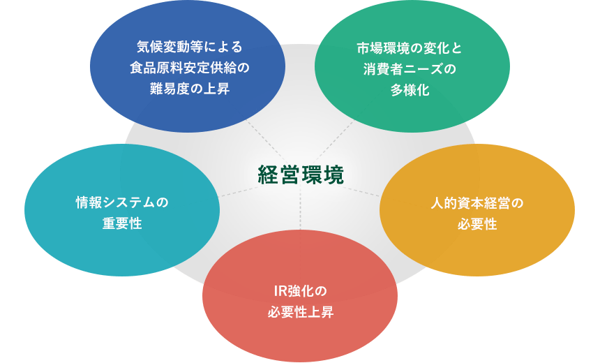 当社グループでは、中長期的な観点から特に対処すべき経営環境として以下の5つを抽出しており、これに対応する基本的な経営戦略を設定しております。