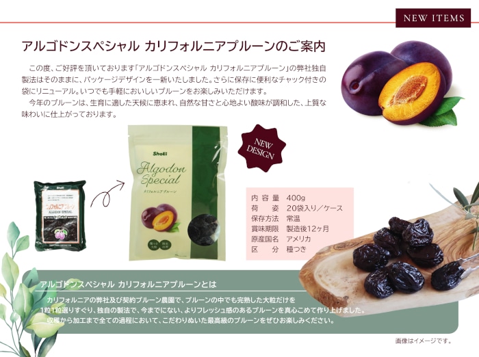アルゴドンスペシャル カリフォルニアプルーンのご案内